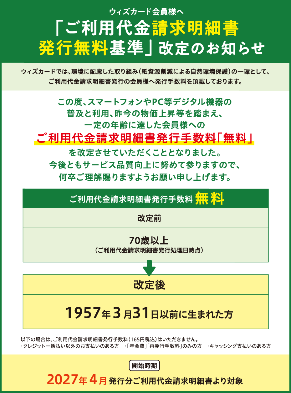 「ご利用代金請求明細書発行無料基準」改定のお知らせ
