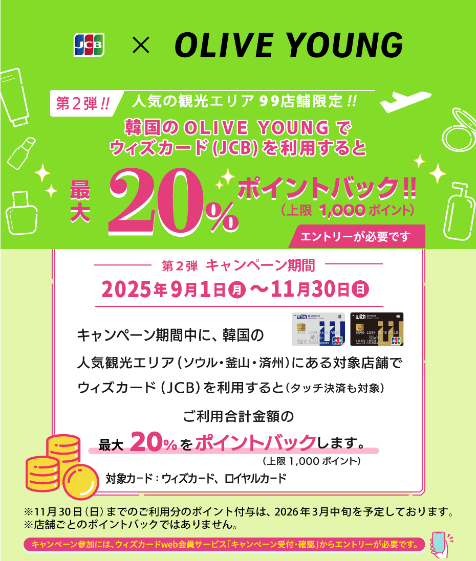 キャンペーン > 第2弾!韓国のオリーブヤングでウィズクレジットを利用すると最大20%ポイントバック!