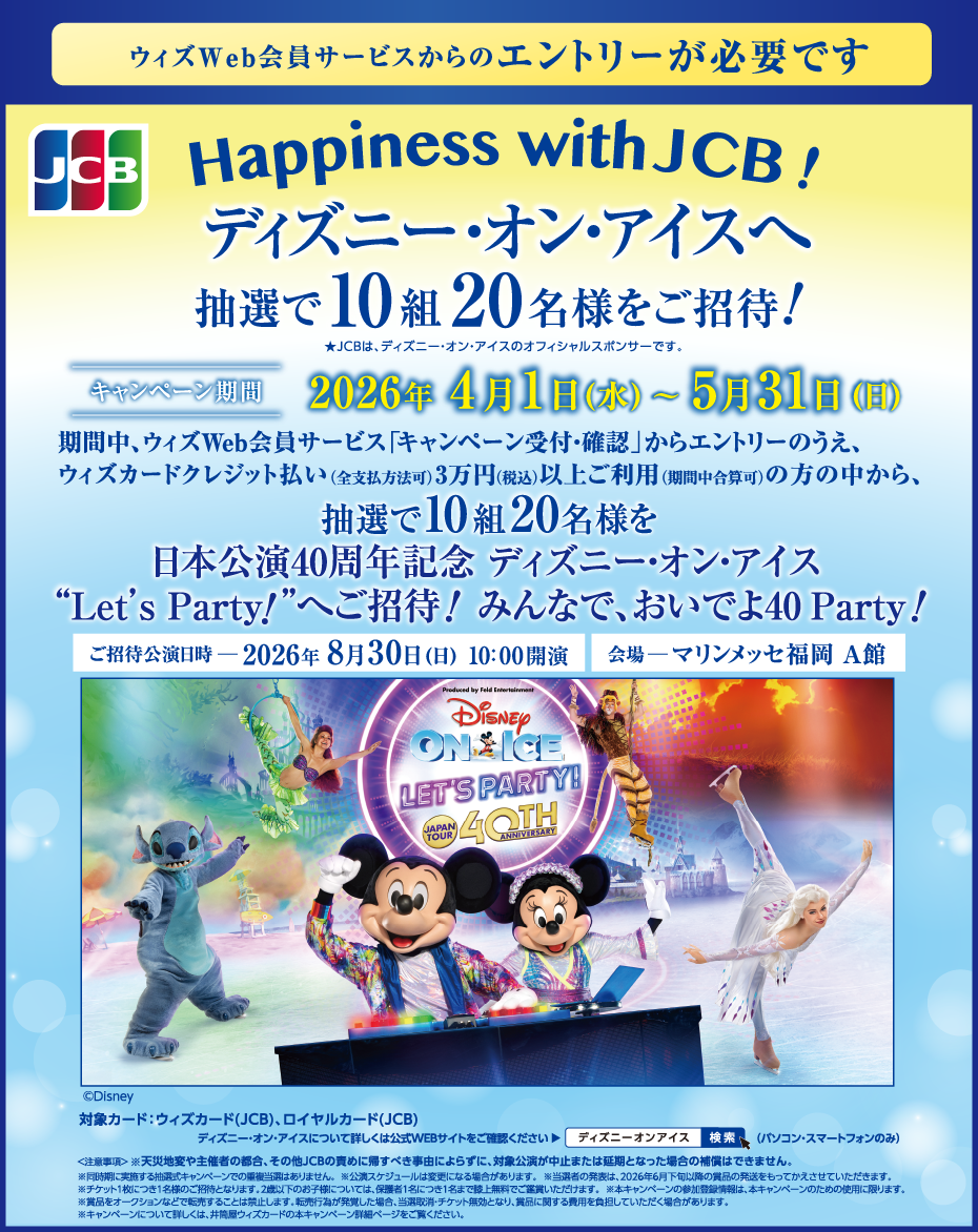 キャンペーン > ウィズクレジット払いをして抽選でディズニー・オン・アイスへご招待